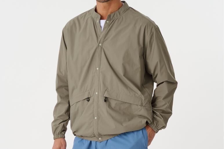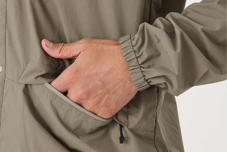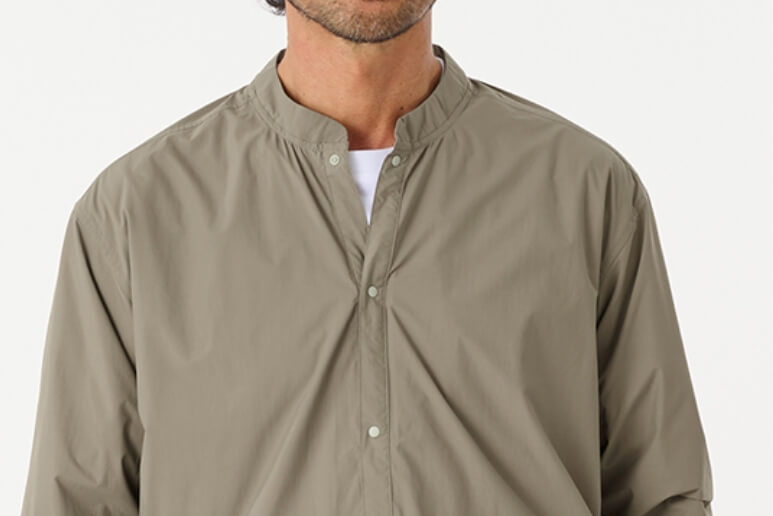 着脱しやすいドットボタン、襟付きシャツにも合うラウンドネック、少しゆとりのあるシルエットなど、ウェアを選ばず多様な着こなしができる軽量・超撥水シャツジャケット。コンパクトで携帯性にも優れ、登山から旅行まで、いつでも持っていいたい一枚。