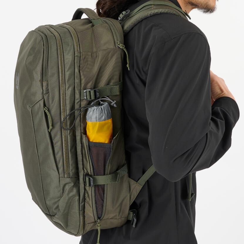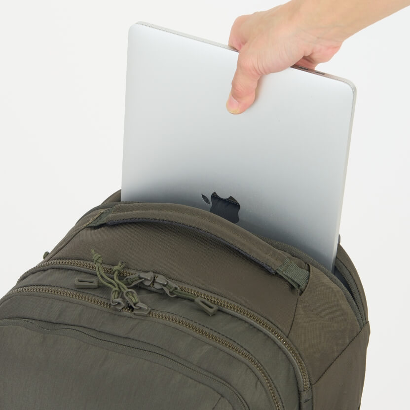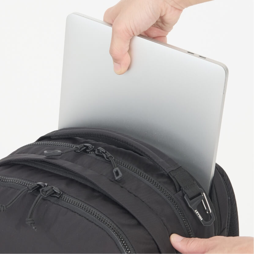 丸みを帯びたシンプルで親しみやすいデザインの中に、アウトドアで培った耐久性と機能性を凝縮。PCスリーブ、オーガナイザーポケット、大容量サイドジップポケットを備え、想像以上の収納力を提供します。また、背負うだけでなく、縦横のハンドルで手持ちとしても使用可能。スタイルと機能を両立した多用途モデルです。