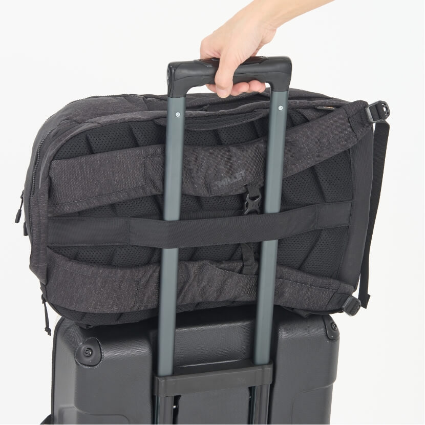 連泊出張にも対応可能な収納力を持つモデル。スーツケースのように大きく開くメイン収納は、着替えやかさばる荷物のパッキングを容易にします。フロントには便利なオーガナイザーポケット、背面にはPCスリーブを装備。ビジネスシーンで求められる機能をバランス良く備えた、出張の頼れる相棒です。