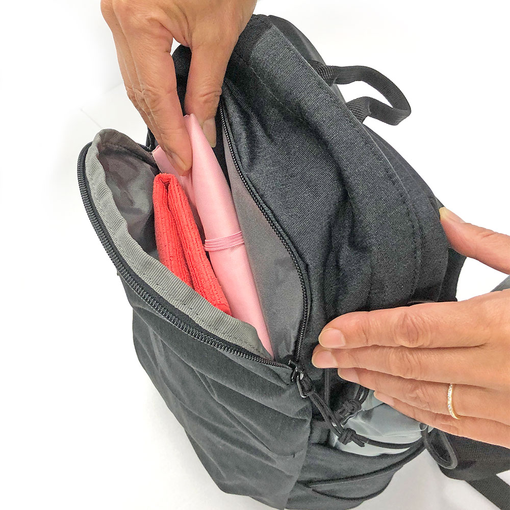 上下2つのフロントポケットには、ハンカチやスマートフォンなどを整理して収納できます。