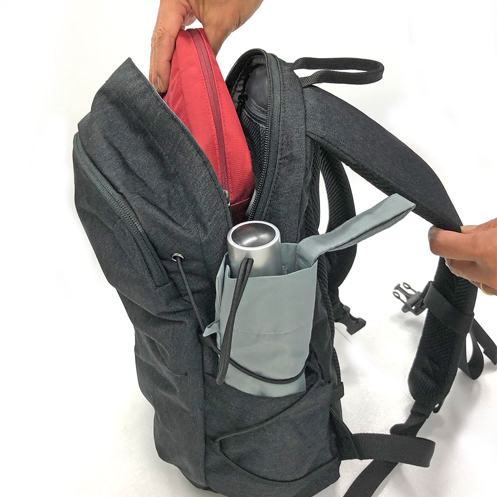 両サイドにポケットがあるので、折畳み傘や水筒をしまうのに重宝します。
