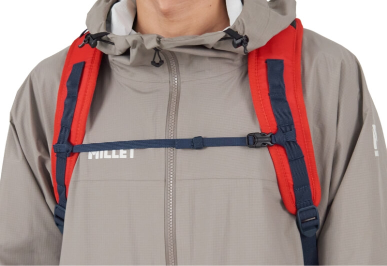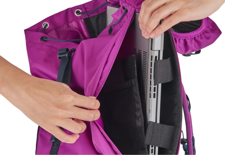 クッション性を確保した背面パッドどショルダーハーネスが快適な背負い心地を提供します。フロント下部にはジッパーポケット、内側には小物用のオーガナイザーポケットやPCスリーブポケットなど、実用的な収納を豊富に備え、ハイキングだけでなく日常にも活躍します。
