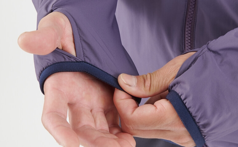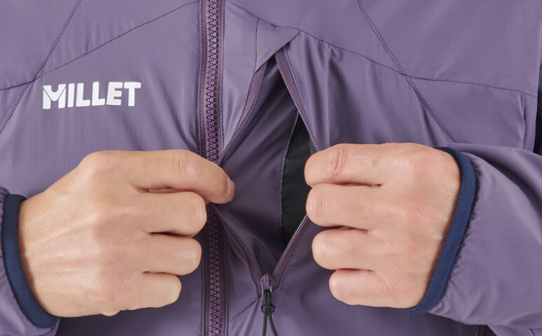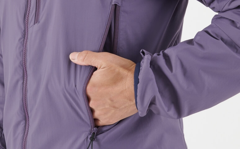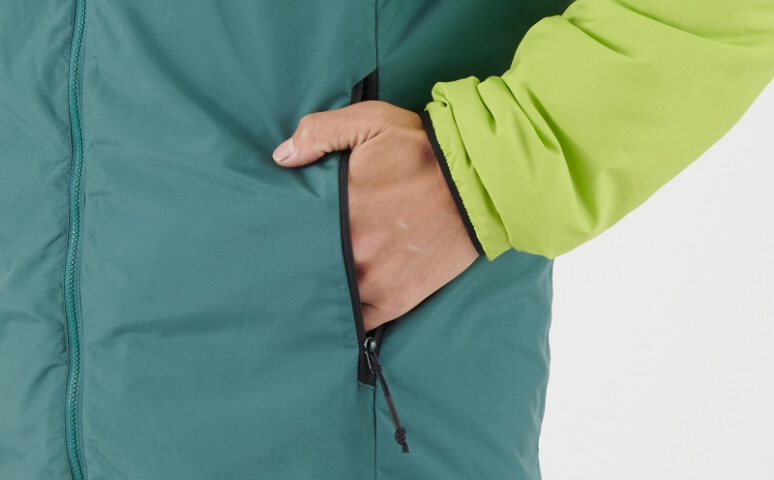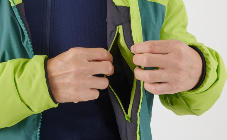 2つの独自素材を組み合わせたアクティブインシュレーションジャケット。表地には超撥水性と防風性に優れ、なおかつ空気の流れを妨げない「ブリーズバリヤー®」を採用し、ある程度の風雨を弾きながら内側の蒸れも逃します。中綿には適度な保温力を維持しながら通気性に優れた「スルー ウォーム®」が、行動中でも衣服内をドライで寒くない状態に保ちます。
