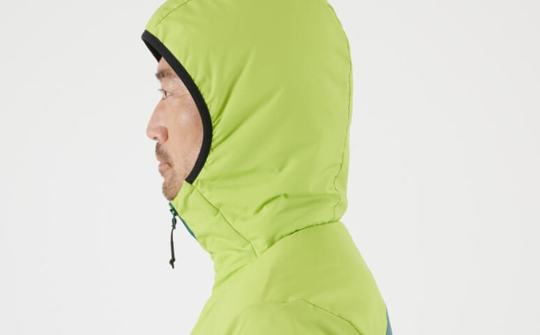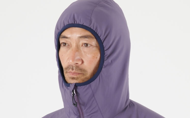 雪山登山をはじめ、冬のハードなアクティビティを想定してデザインされた軽量インシュレーションフーディ。軽量ながら高い保温性と湿気に対する強さを備えたリサイクル素材のプリマロフト®中綿を、部分ごとに戦略的に厚みを変えて配置しています。撥水性を備えた表地と、体の動きを考慮した立体裁断によって過酷な状況でのストレスのない自然な動きやすさを可能にしました。シェルの上からの着用も可能なシルエットで寒い環境で重宝します。