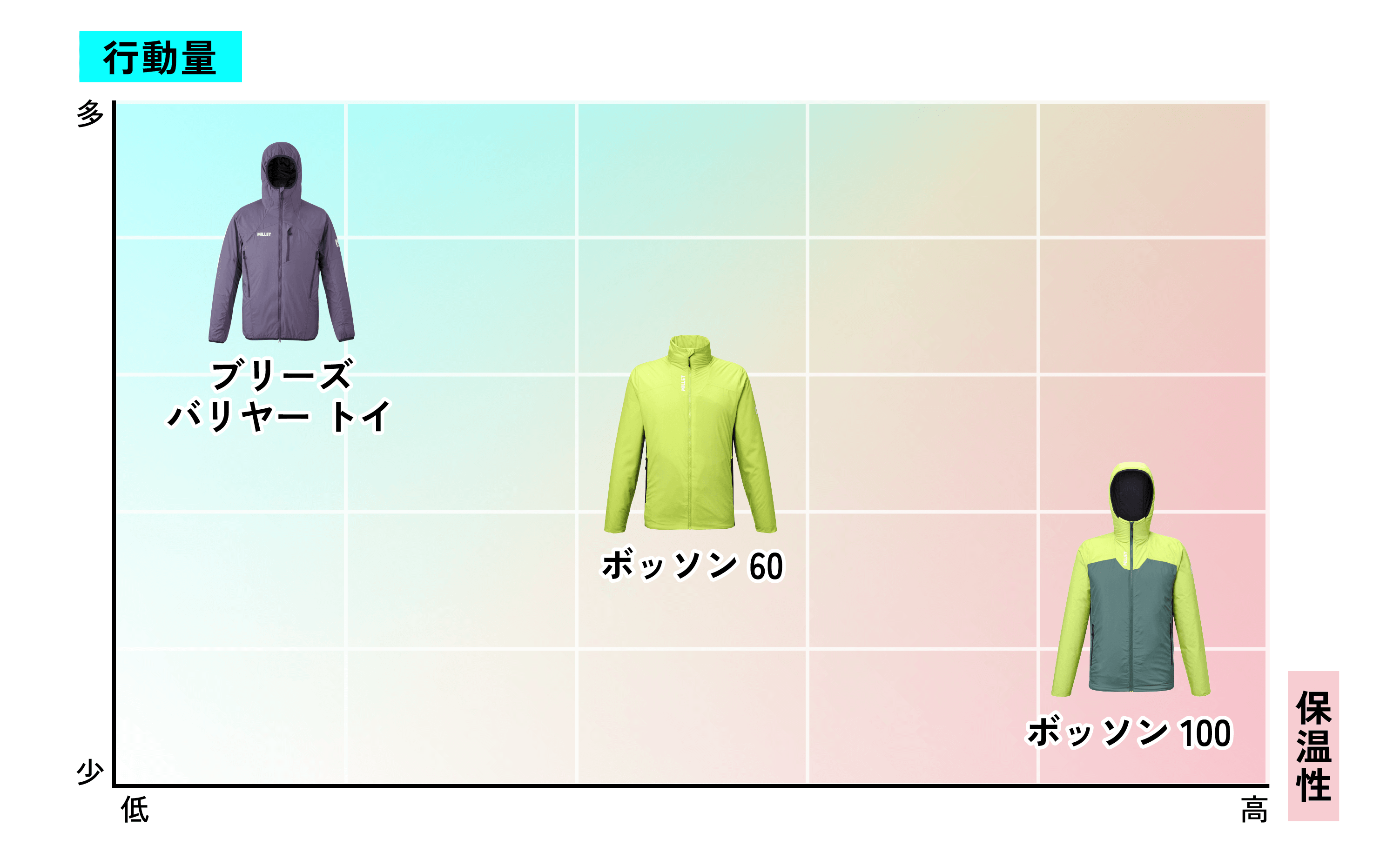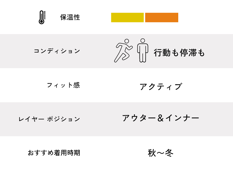 保温や通気、吸水速乾、さらにはレイヤリングまで、行動中のさまざま状況を想定し、それに応じて必要となる機能に着目して開発された、特徴的な3つのインシュレーション。あなたのスタイルに最適な一着は?