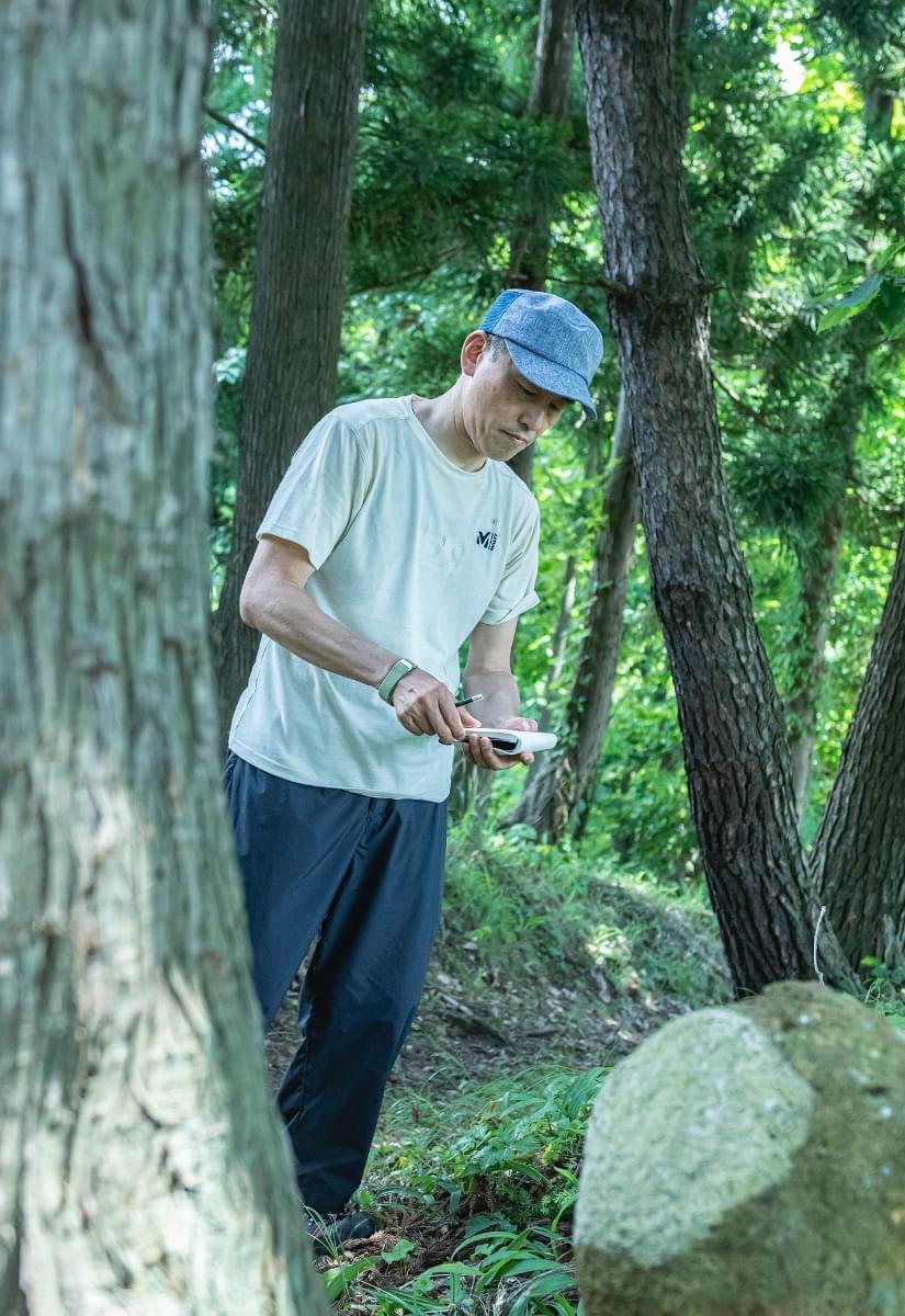 そう言いながら、ヤブを漕ぎ、道なき道を歩く。目指すものが、やすやすと見つかる場所にないことだけは分かっている。そうして時に中程度の石であっても見つけるとスケッチをし、巻尺でサイズを測ってメモをつくる。