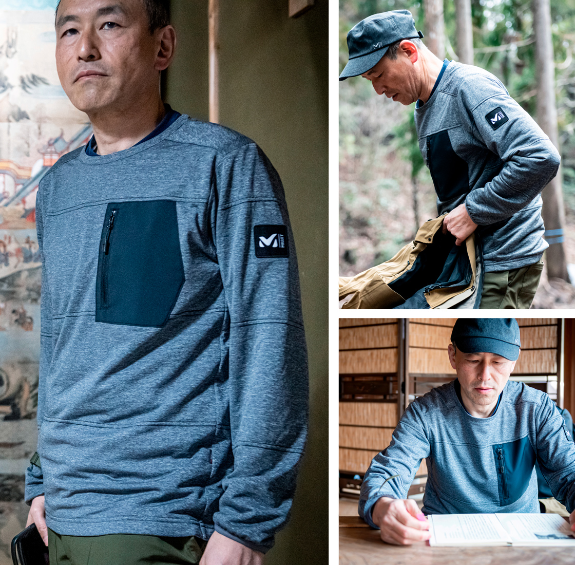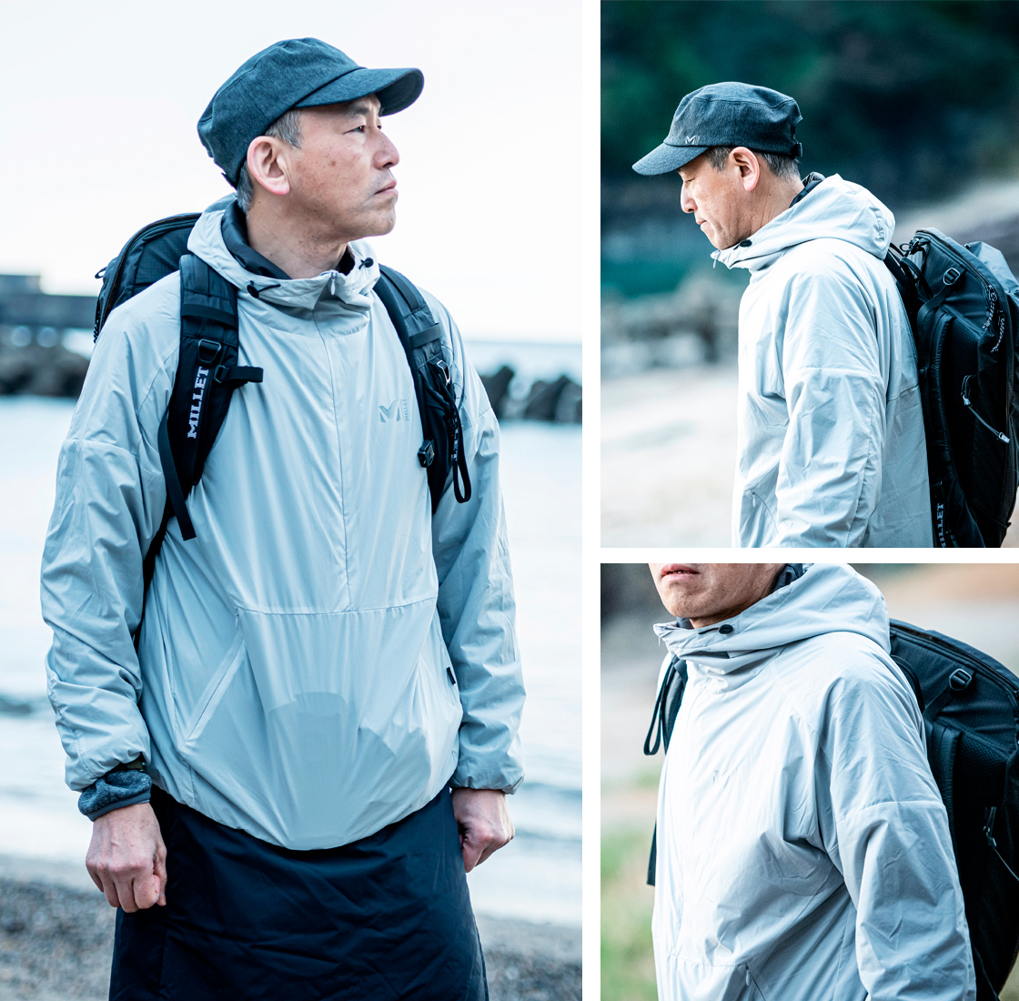 止まっているときには暖かく、動いているときには暑すぎず蒸れにくい、プルオーバータイプの軽量アクティブ防寒ストレッチフーディ。さらにちょっとした雨や風も弾いてくれる防風撥水機能も備え、秋冬の行動中は中間着にもアウターにも大活躍。