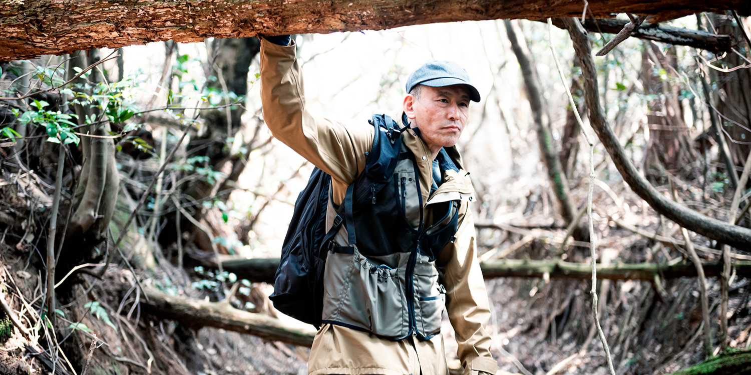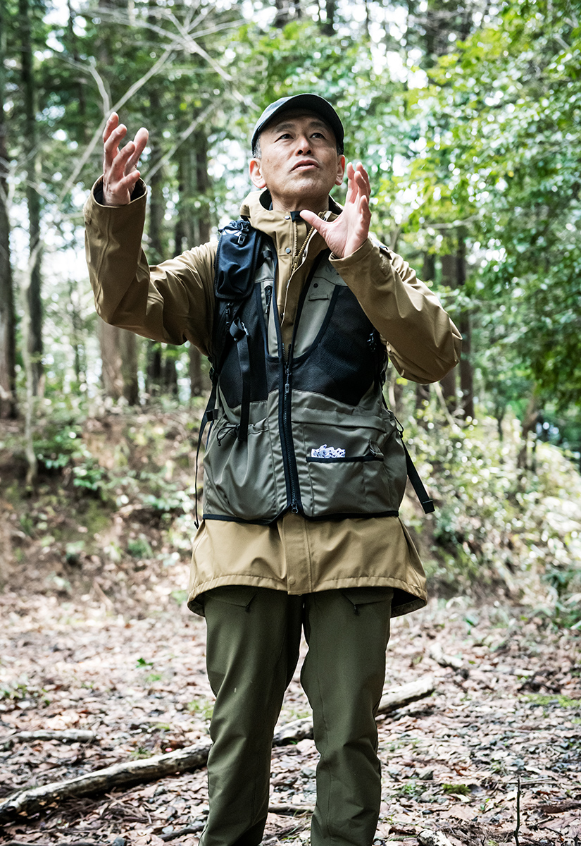 整備された登山道を1時間ほど歩いた山頂は台地のように緩やかだ。布引の滝は、杉の木立の間を流れるせせらぎが、台地の端から流れ落ちていくものだ。滝の頂上に立って、髙橋さんは眼下の風景を眺める。