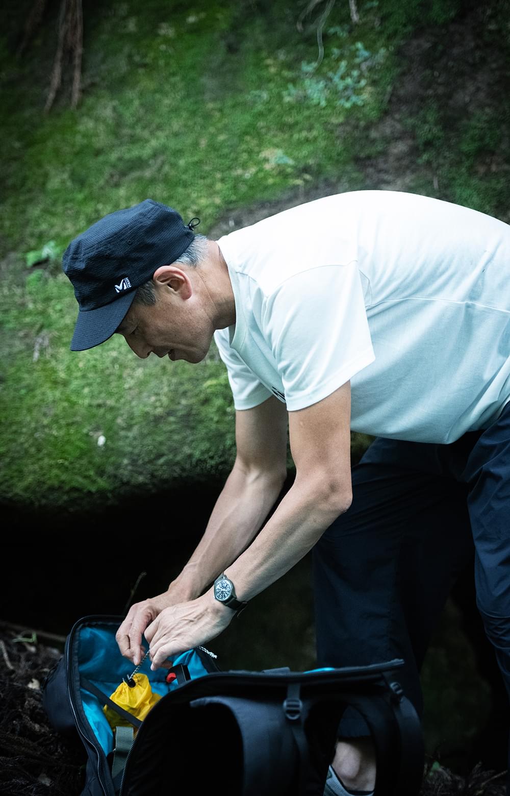 山を歩いているときは運動量が大きく、目的地では細かく調べ物をしているのでじっとしていることが多いんです。その意味で、汗冷えしにくいドライ系のインナーを愛用しています。