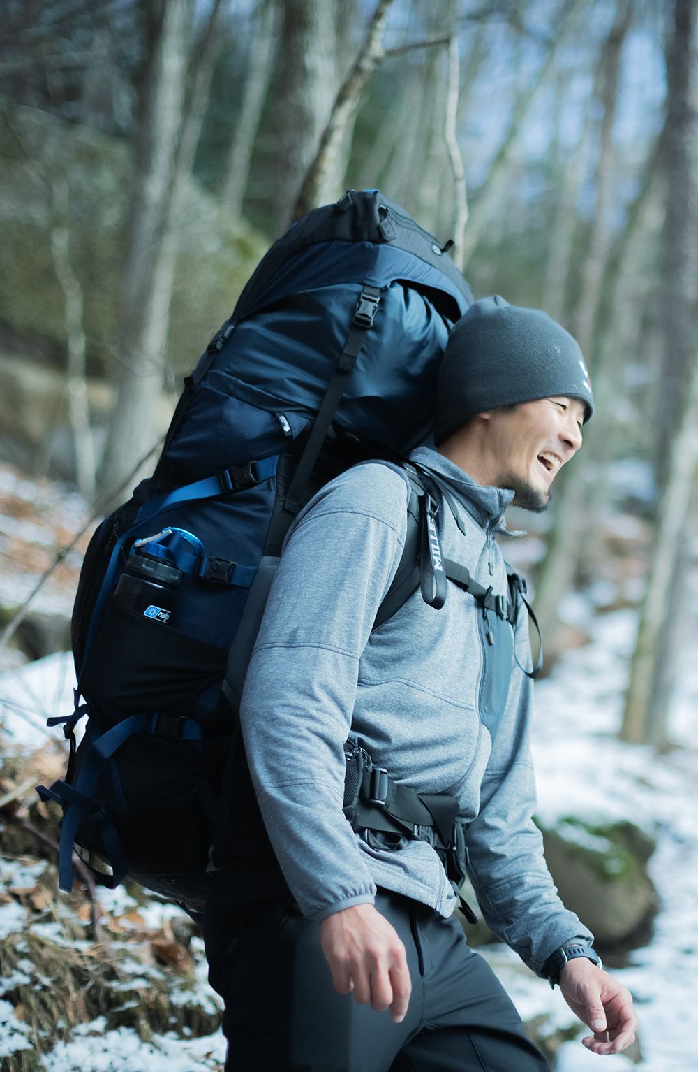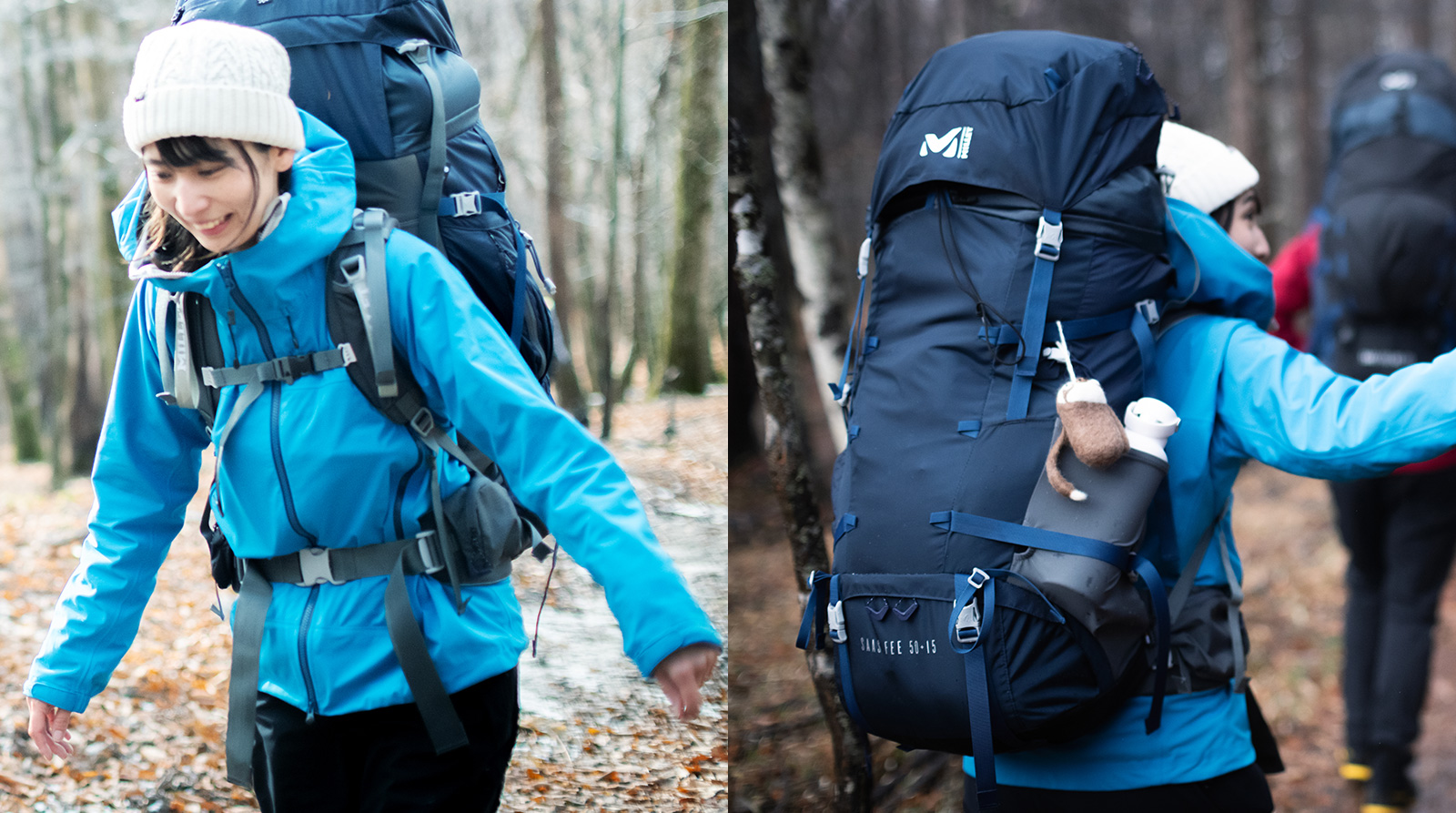 女性の体型に合わせてデザインされた、女性専用モデル。本体容量は50Lながら、バックパック上部のトップスカートを伸ばすことで15Lまで拡張可能。食料など荷物の増減が大きなテント泊にも柔軟に対応する。