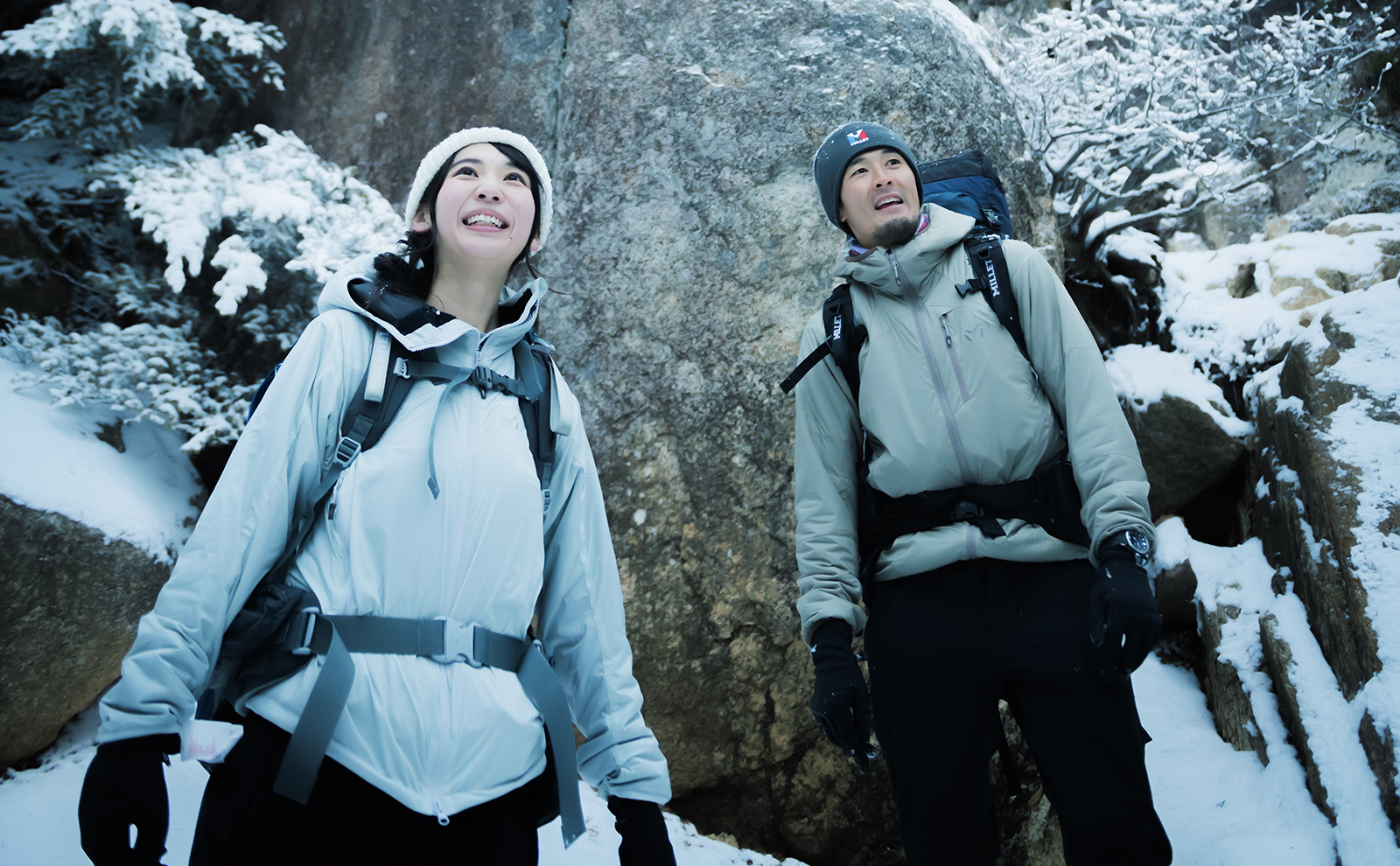 秋冬のアウトドアに対応するオールウェザージャケット。驚異的な50,000g/㎡/24hの透湿性を誇ると同時に、適度な保温性を備えた裏起毛を採用。さらに体の動きをさまたげないストレッチ素材によって、冬の快適性を確保する。