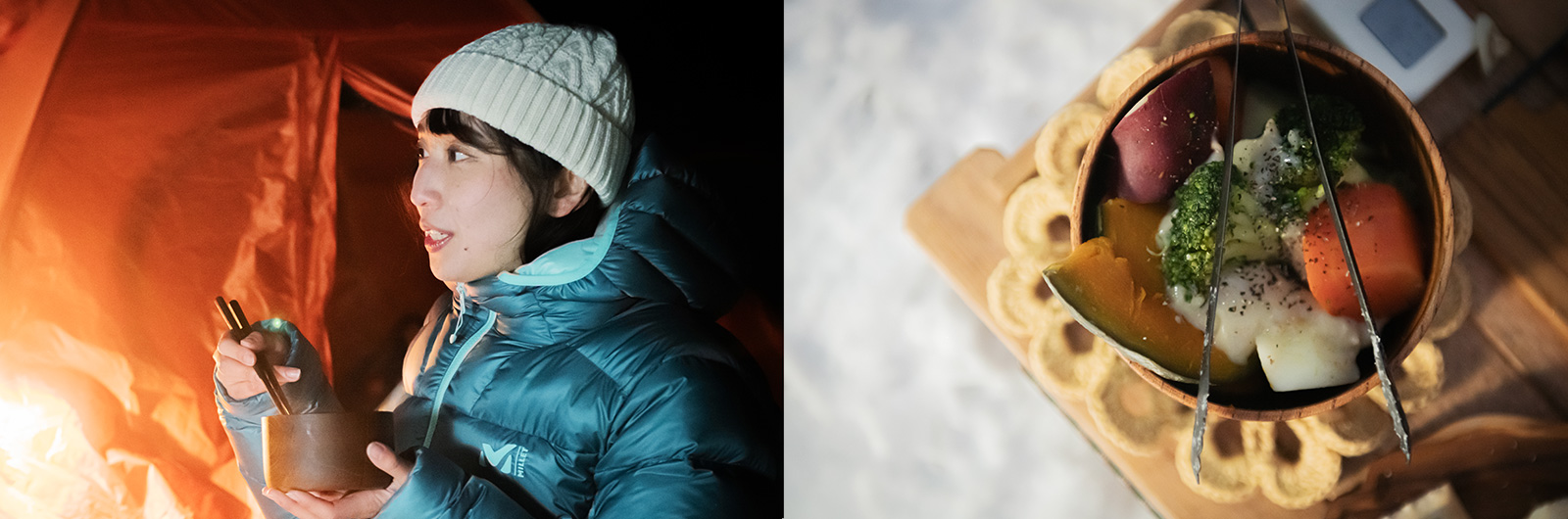 今まで飾り気のないアルミの食器でわしわしと食事を済ませていた杉本さんからすれば、それはカルチャーショック以外の何者でもなかった。けれど、そこに流れる豊かで充実した空気感は、雪景色の山キャンを何倍も楽しく、新鮮なものにしてくれた。