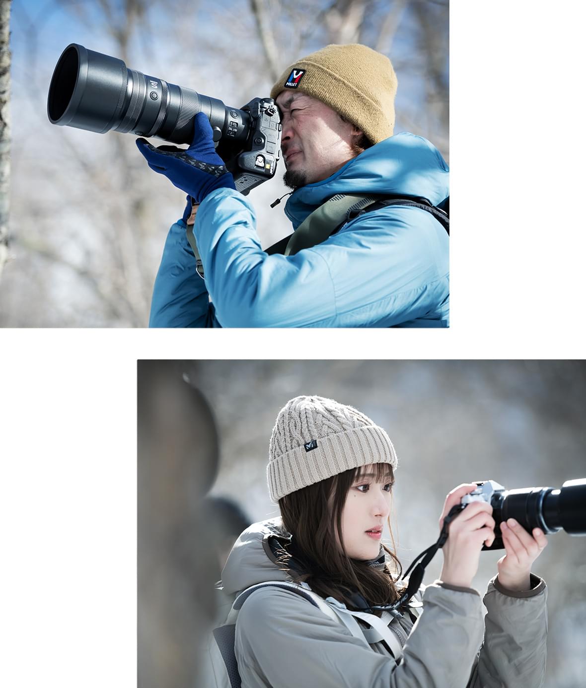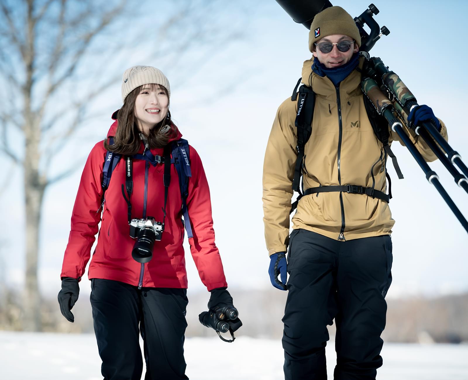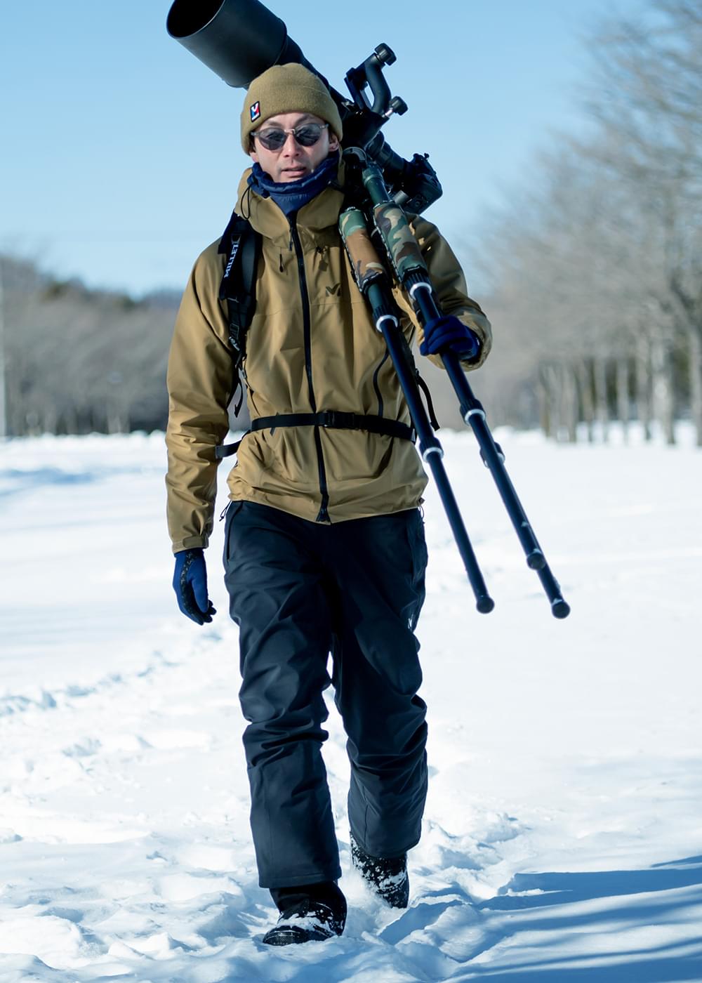 「僕は写真家なので、鳥を見つけたら写真を撮ります。だけどただ見つけるだけ、眺めるだけでもいいと思うんです。もちろん双眼鏡でじっくり観察するのも楽しいですよね。ひとつあるとしたら、鳥を見るためには忍耐が必要なんです。ジッとして鳥の警戒心をとかないといけません。そういうときに夏なら暑さや紫外線の対策、冬は防寒対策が必要になります。きちんとしたウェアを着ることは、思ってる以上に大切な要素ですね」