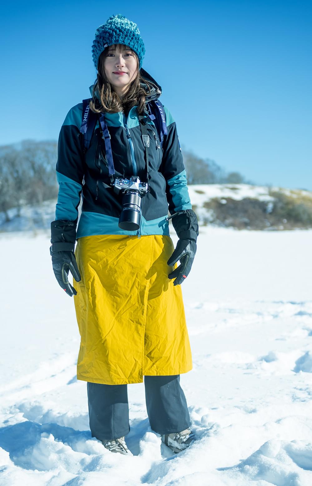 北海道の冬、ということでいちばんに防寒を考えました。が、着すぎても動きにくくなるので、動ける防寒に気をつかいました。