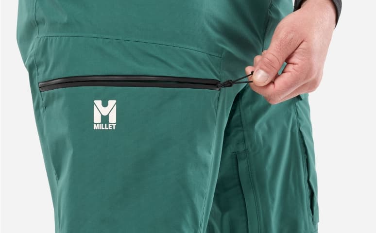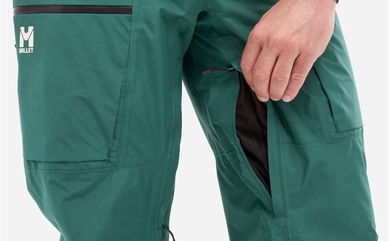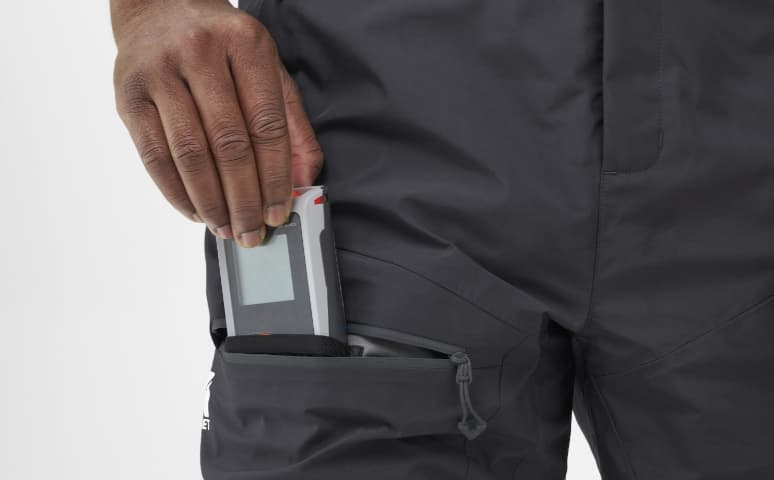 優れた防水性と透湿性、耐久性を兼ね備え、環境への影響を軽減したゴアテックス ePEメンブレンを採用した防水透湿スキーパンツ。動きやすさを考慮した立体裁断や取り外し可能なサスペンダー、大きなサイドジップベンチレーションなど、細部までフリーライドスキーを意識してデザインされています。大腿部には携帯電話やビーコンを収納できる止水ジッパーポケットも備えています。