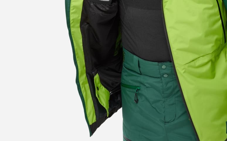 ゲレンデからバックカントリーまで幅広く対応する高機能スキージャケット。独自開発の3レイヤー「ティフォン® ウォーム ネクスト」は高い耐水圧と透湿性に加え、起毛裏地による保温性を備え、厳しい環境でのアクティビティに対応します。動きを妨げない立体裁断とストレッチ性、換気性を高める脇下ベンチレーション、大きなチェストジップポケット、取り外し可能なパウダースカートなど、バックカントリースキーでの便利な機能を多数備えています。