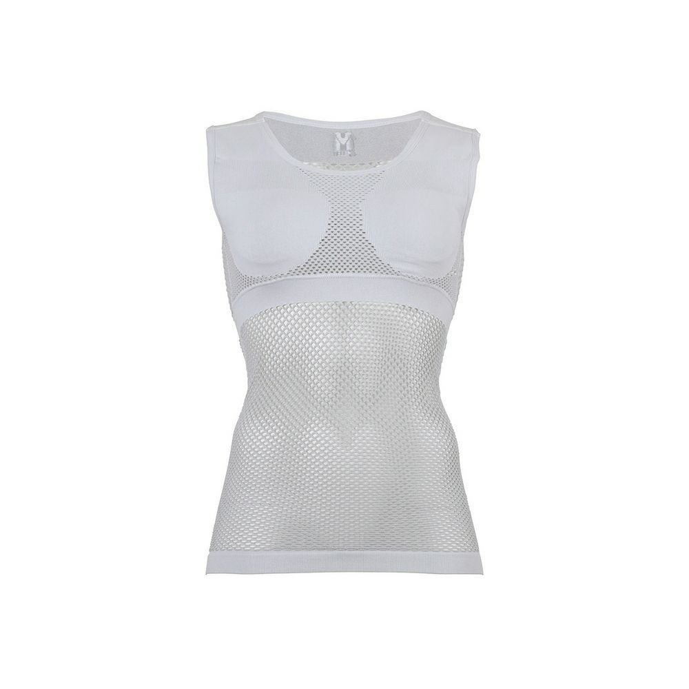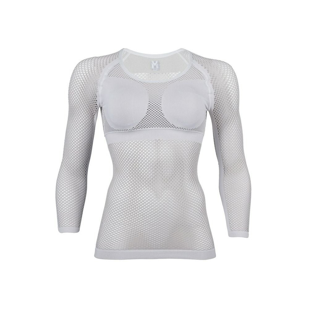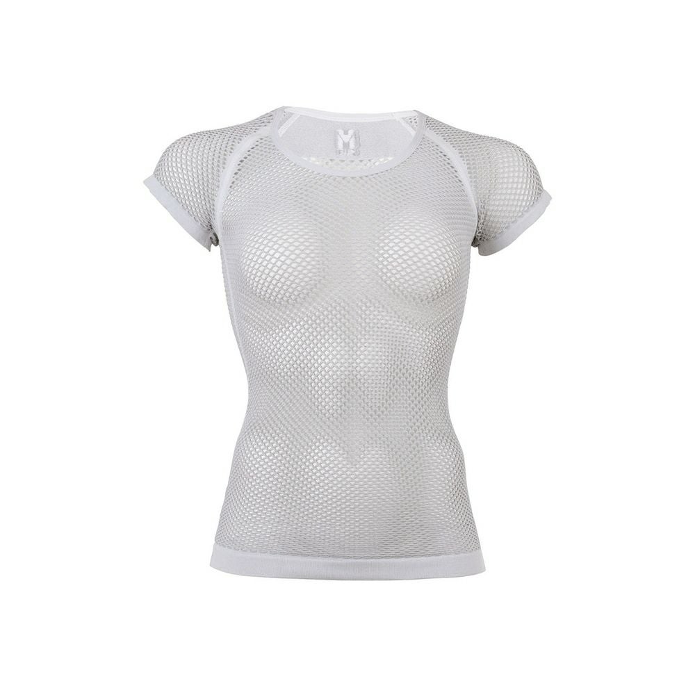 メッシュが肌に密着することで吸水性のあるベースレイヤーへと汗を運びます。高い通気性によりベースレイヤーの汗の発散を助けながら肌に触れている部分のベタつきを軽減します。