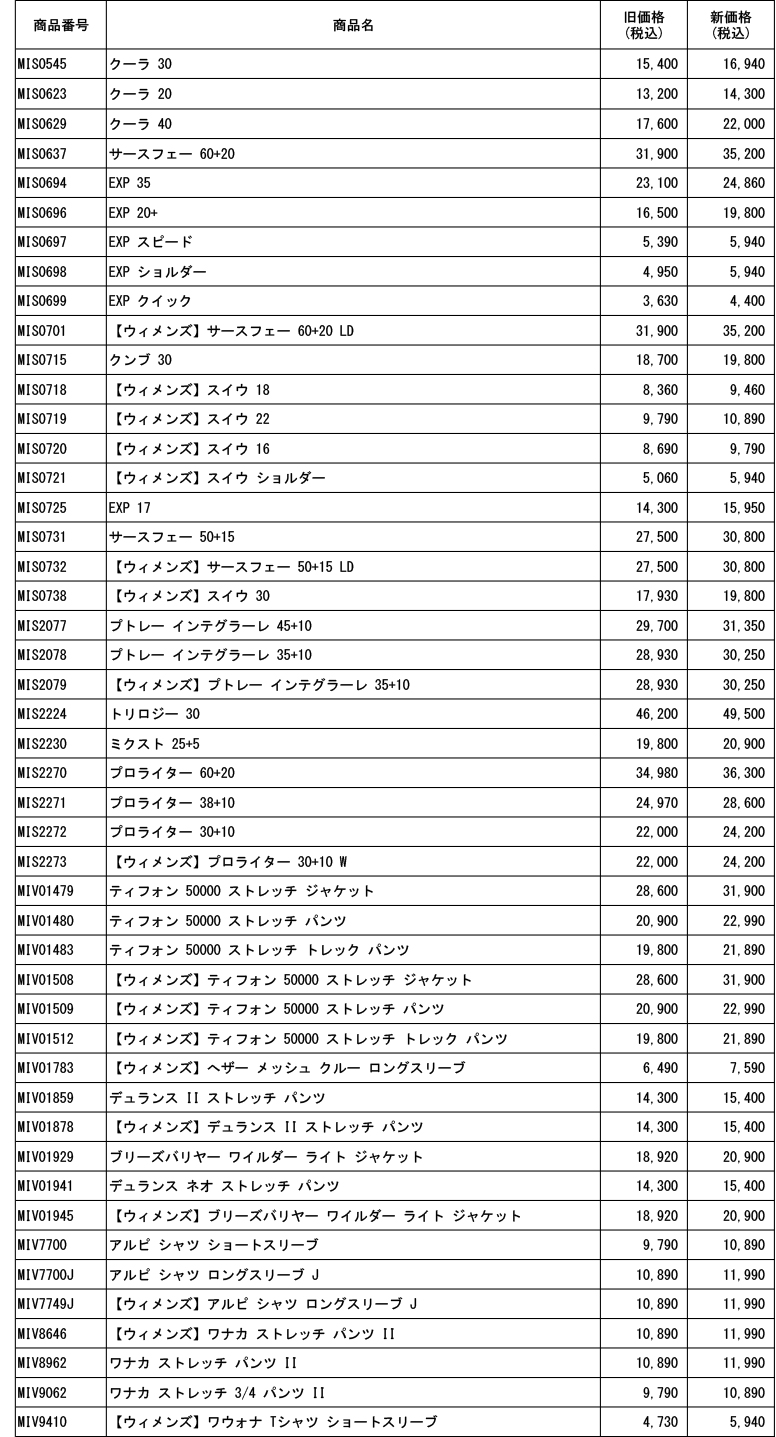 Millet(ミレー)公式通販でご購入いただいた商品では、変更前の旧価格が記載された商品タグ(下げ札)が付属される場合がございますが、ウェブサイトにて表記されている価格及び商品到着後の納品書に記載の価格が正しい価格となりますので、予めご了承のほどよろしくお願いいたします。