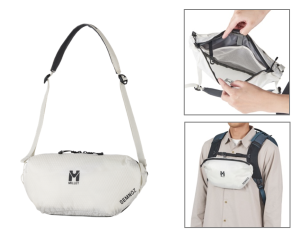 シーンを選ばずオールラウンドに活躍する軽くて使いやすいボディバッグ。生地には超高分子量ポリエチレン繊維を組み合わせたリップストップナイロンを採用。本体両サイドに配置されたカラビナによって、同シリーズのセムノバックパックのチェスト部分に取り付けることができます。