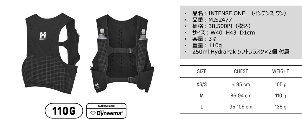 1921年創業のフランスを代表するアルパインブランド「ミレー」(ミレー・マウンテン・グループ・ジャパン:東京都品川区、代表取締役:ペア・ラスムセン)は、わずか110gという驚異的な軽さと、縫い目を持たないシームレス構造を実現したトレイルランニングパック 「INTENSE ONE」 を発表します。