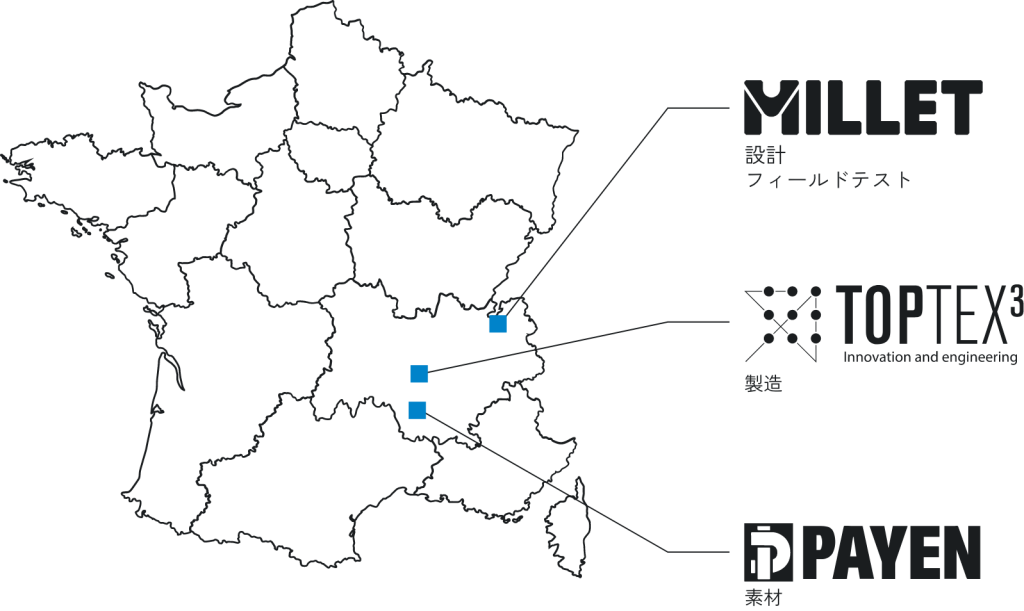 INTENSE ONEはフランス・ドローム県とオート=サヴォワ県のあいだで設計され、製造までをフランス国内で行う、完全フランスメイドのプロダクトです。1921年の創業以来、バックパックづくりを続けてきたアルパインブランドのMILLET。その技術と経験を背景に開発されました。