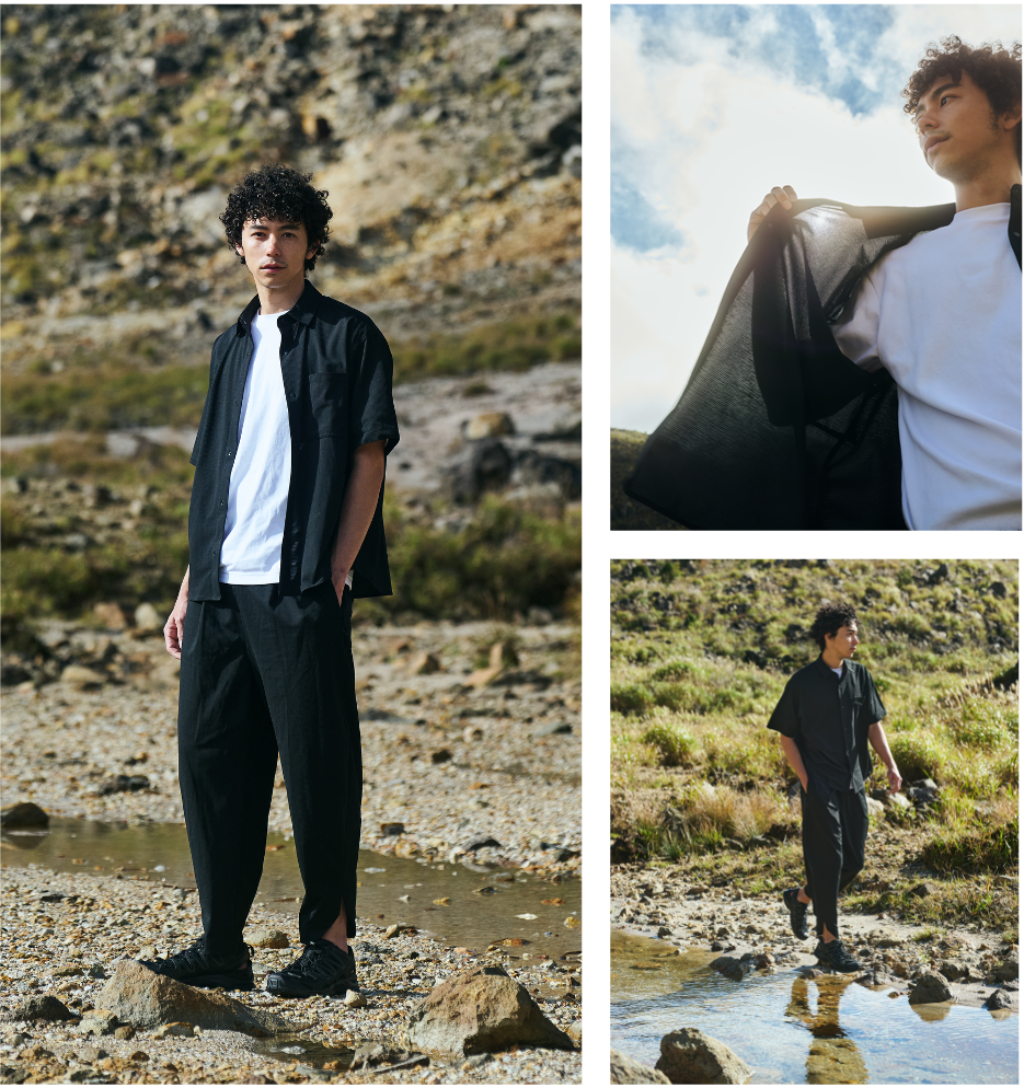 抜群の通気性と動きやすさを備えた微細なメッシュの薄手ニット生地「CAVE」は優れた伸縮性と高い通気速乾性によって暑い季節でも快適な着心地を実現しました。締め付け感の少ない自然なシルエットで日常にも溶け込みやすく、デイリーユースにもぴったりです。
